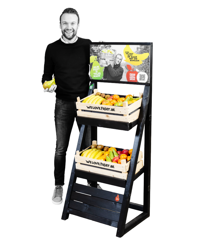 Vers fruit aanbieden alleen is niet altijd genoeg om het gedrag van mensen structureel te veranderen. Daarom is ons concept vollediger en gericht op beleving en het stimuleren van een gezond eetpatroon. We vestigen extra aandacht op het fruit met onze kaarten en displays. Op een luchtige en laagdrempelige manier delen we informatie over de eigenschappen en voordelen van fruit. Soms met een knipoog, maar altijd met de bedoeling om mensen inzichten te geven in hun levensstijl.